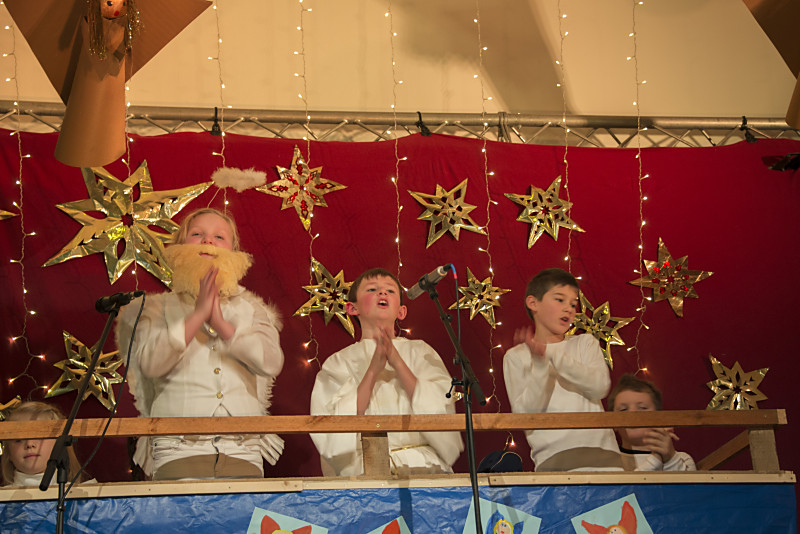 Unsere Musical-AG und unsere Tanzgruppe erzählten gemeinsam mit dem Gesangverein, dem Posaunenchor und Solisten die Geschichte eines Engels, der auf die Erde gefallen war.