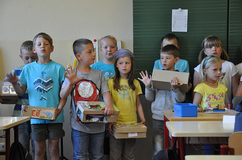 Alle Kinder haben ihre Schuhkartons mitgebracht.