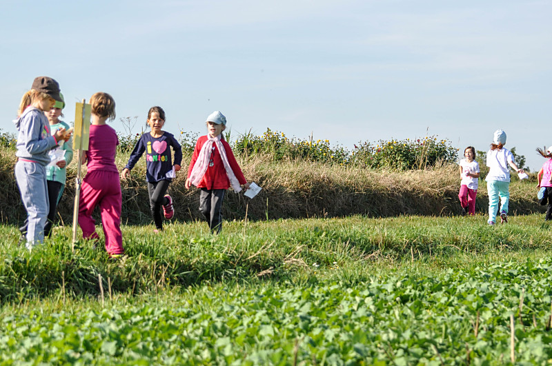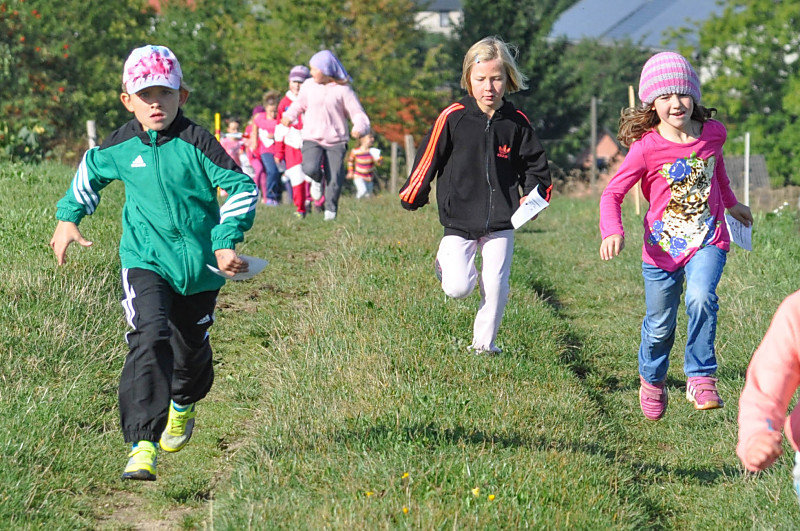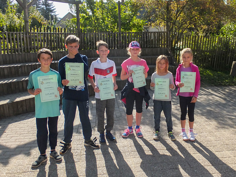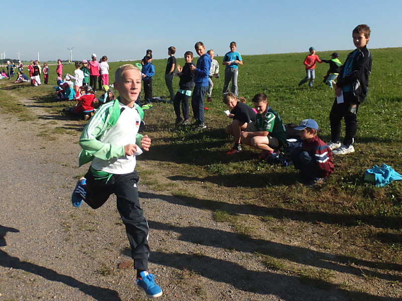 Bei herrlichem Wetter liefen die Schüler der 1. bis 4. Klasse mit ihren Laufzetteln die unterschiedlichen Stationen an. Mit Freude und Durchhaltevermögen schafften es alle, das Ziel zu erreichen. Dort wurden sie von ihren Mitschülern kräftig angefeuert. Zuschauer gab es diesmal auch am Feldrand und in der Luft.