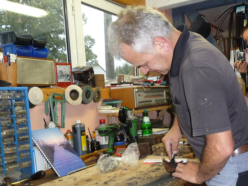 | Hier schrägt Herr Simon den Gürtel an einem Ende an. |
