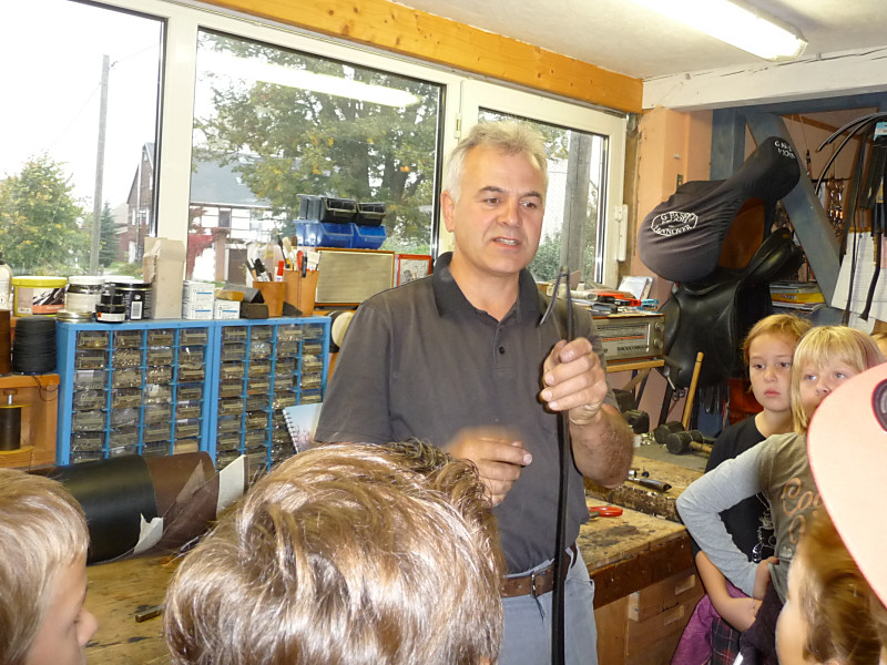 Herr Simon zeigt das Innenleben eines Sattels. |