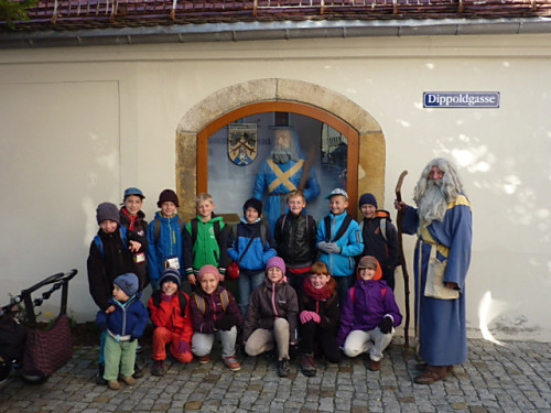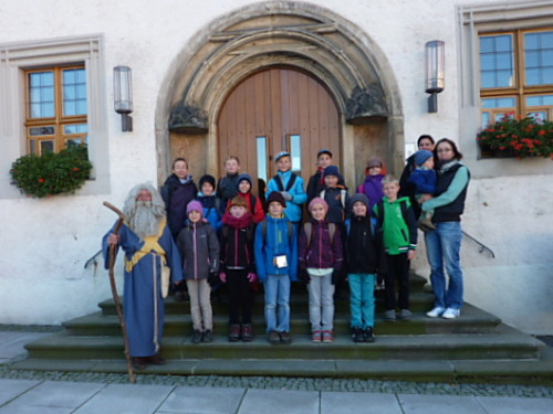 Die Klasse 4b besuchte die Stadt Dippoldiswalde. Ein besonderer Stadtführer erwartete uns bereits am Busbahnhof – der Dippold. Von diesem Einsiedler bekam auch die Stadt ihren Namen – Dippoldiswalde. Natürlich kennt er seine Stadt am besten und wir hatten eine sehr interessante Führung durch alle Gassen und vorbei an verborgenen alten Gebäuden.
