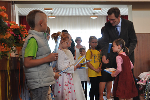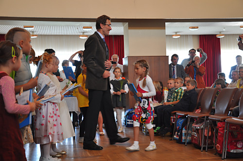 Am 30. August 2014 fand die Schuleinführung im Kulturhaus Pretzschendorf statt. Unsere Schulleiterin Frau Sauer nahm die Schüler der ersten Klasse feierlich in die Grundschule auf. Herr Reichel, der erste Stellvertreter unseres Bürgermeisters, übergab jedem Kind seine Fibel.