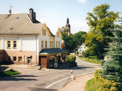 | Links der alte Pretzschendorfer Gasthof, rechts das Kulturhaus heute. |