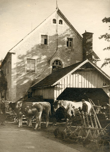 | Die Nachfahren des damaligen Schmiedes sind heute in einem neuen Gebäude immer noch in diesem Handwerk tätig. Kuhgespanne sieht man keine mehr. |