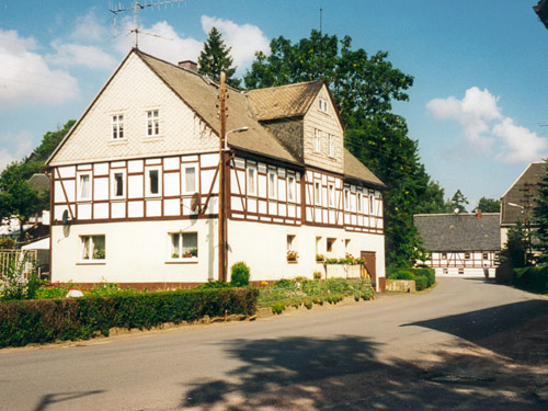 | Das Gebäude rechts ist 1993 der neuen Sparkasse gewichen, die im Jahre 2002 leider geschlossen wurde. Die Bäckerei links gibt es heute noch. |