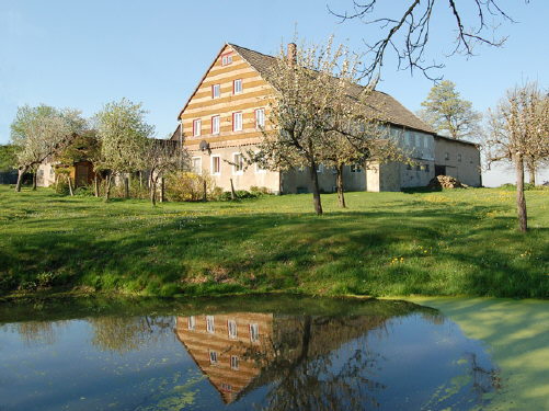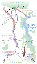 Röthenbach (b. Dippoldiswalde) ist mit knapp 220 Einwohnern der kleinste unserer Heimatorte. Das Waldhufendorf zieht sich umgeben von Feldern und Wäldern etwa zwei Kilometer am Lattenbach entlang durch ein schmales Tal im unteren Osterzgebirge (502–567 m ü. NHN). Röthenbach wurde 1336 erstmals urkundlich als „Rotinbach“ erwähnt. Der Name spricht für die Deutung, dass es sich um ein Dorf „am roten Bach“ handelt (Porphyrvorkommen). Das Ortsbild wird vorwiegend von Bauernhöfen aus vergangenen Zeiten geprägt, denn die Landwirtschaft war früher hier die Lebensgrundlage der meisten Einwohner neben dem Handwerk und dem Bergbau. Auch dieser wurde in Röthenbach wie in fast allen Regionen des Erzgebirges betrieben. In insgesamt sieben Bergwerken, zum Beispiel in der „Wills Gott so hau’n wir Erz“-Fundgrube, in der „Johannes-Fundgrube“ und im „Weiße Rose“-Erbstollen, wurde bis 1887 unter anderem Silbererz und Pyrit (Katzengold) abgebaut, das man noch heute an einigen Stellen finden kann. Für Wanderungen durch das idyllische Tal der Wilden Weißeritz und zur Talsperre Klingenberg ist Röthenbach ein idealer Ausgangspunkt. Außerdem kann man um oder auf den Röthenbacher Berg wandern, der sich 605 Meter über dem Meeresspiegel erhebt. Er ist vulkanischen Ursprungs und besteht größtenteils aus rotem Porphyr. |