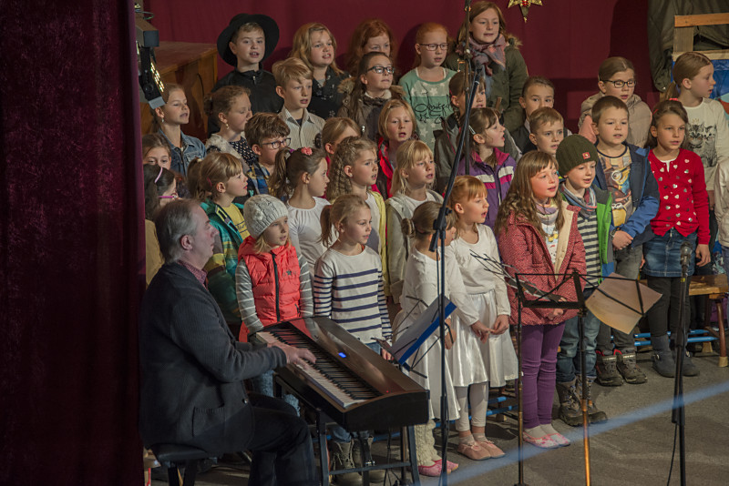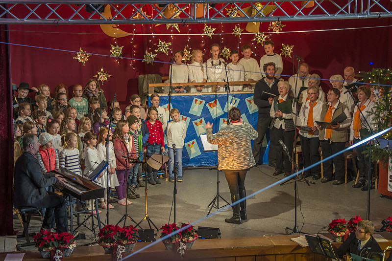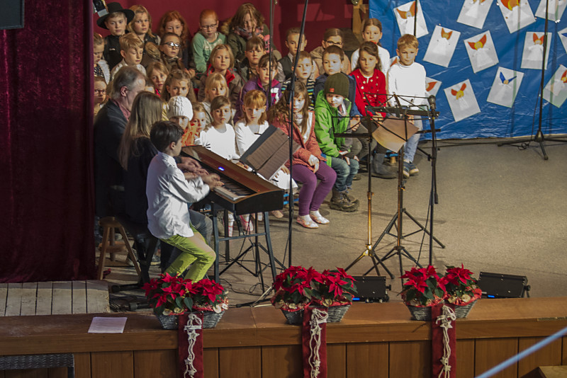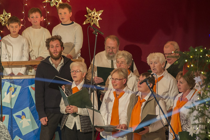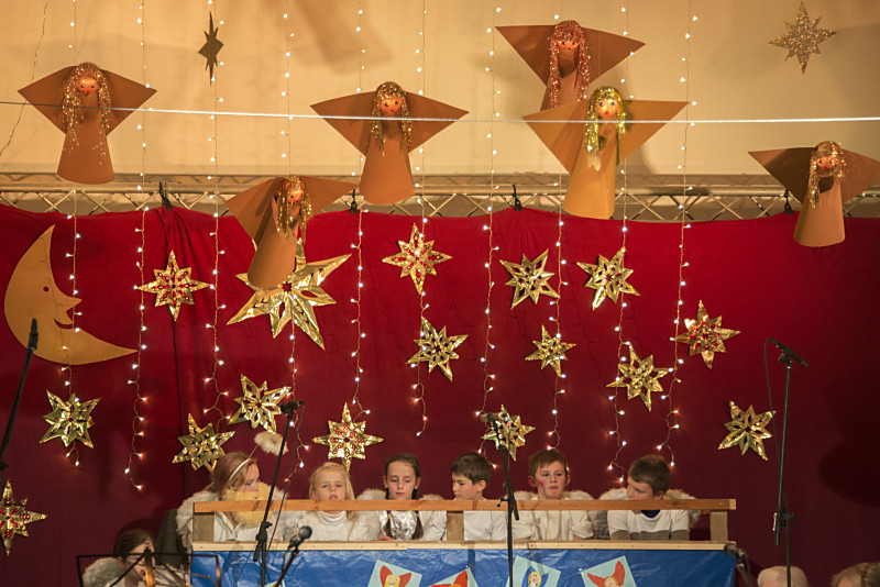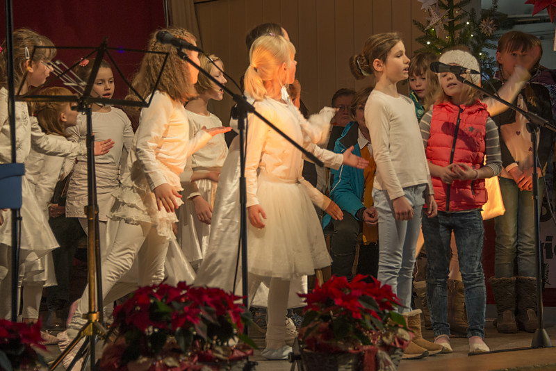Unsere Musical-AG und unsere Tanzgruppe erzählten gemeinsam mit dem Gesangverein, dem Posaunenchor und Solisten die Geschichte eines Engels, der auf die Erde gefallen war.
