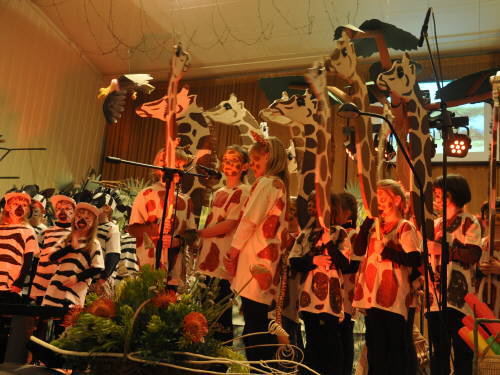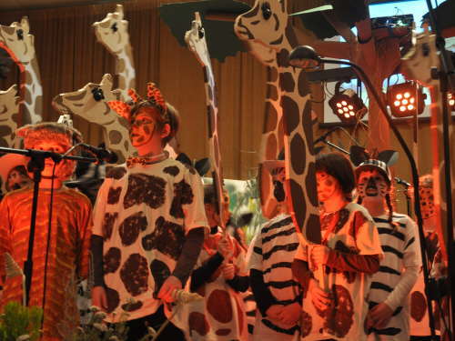 Die Musical-AG unserer Schule studierte das Afrika-Musical „Tuishi pamoia“ ein und wir gestalteten Kostüme und Kulissen für die Aufführung am 19. April 2013 im Pretzschendorfer Kulturhaus.