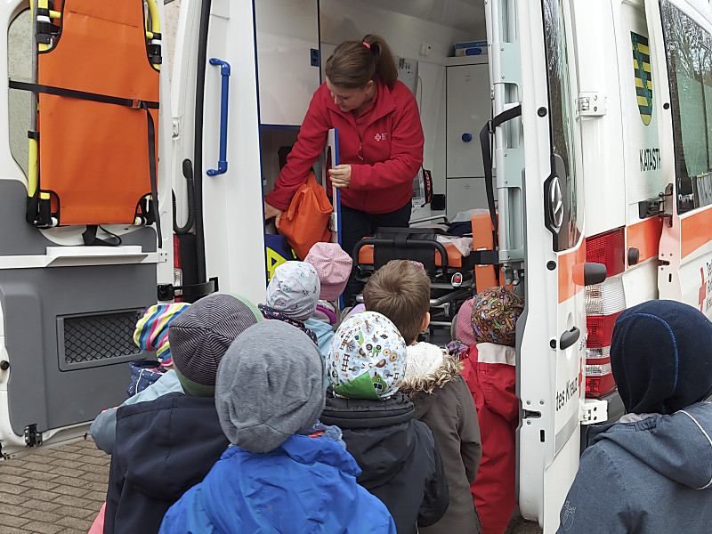Mittendrin statt nur dabei: Welche Herausforderungen Feuerwehr und Rettungsdienst bei Einsätzen haben und was alles in Einsatzfahrzeugen steckt - das erfuhren die Schülerinnen und Schüler der Grundschule Pretzschendorf in der sogenannten "Blaulichtwoche".