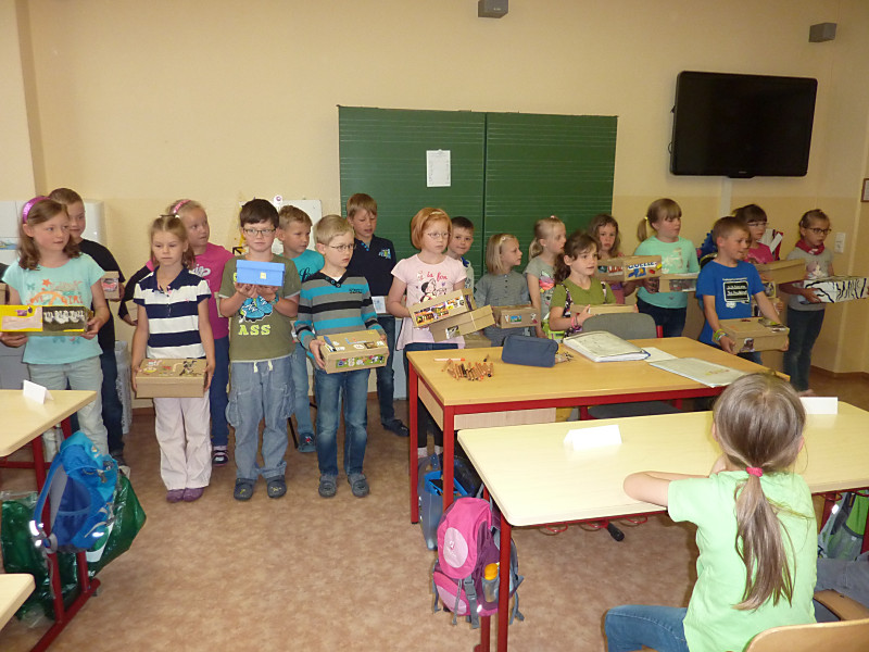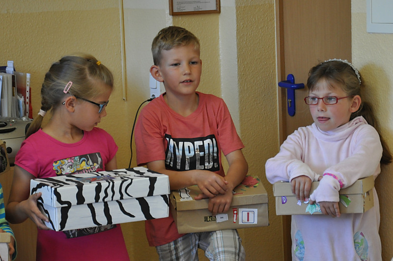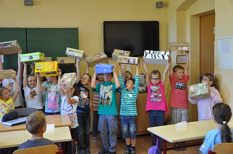 Alle Kinder haben ihre Schuhkartons mitgebracht.