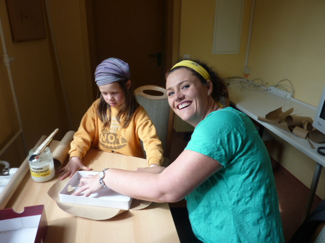 Die Mutti von Julius hilft uns beim Gestalten der Kisten.
