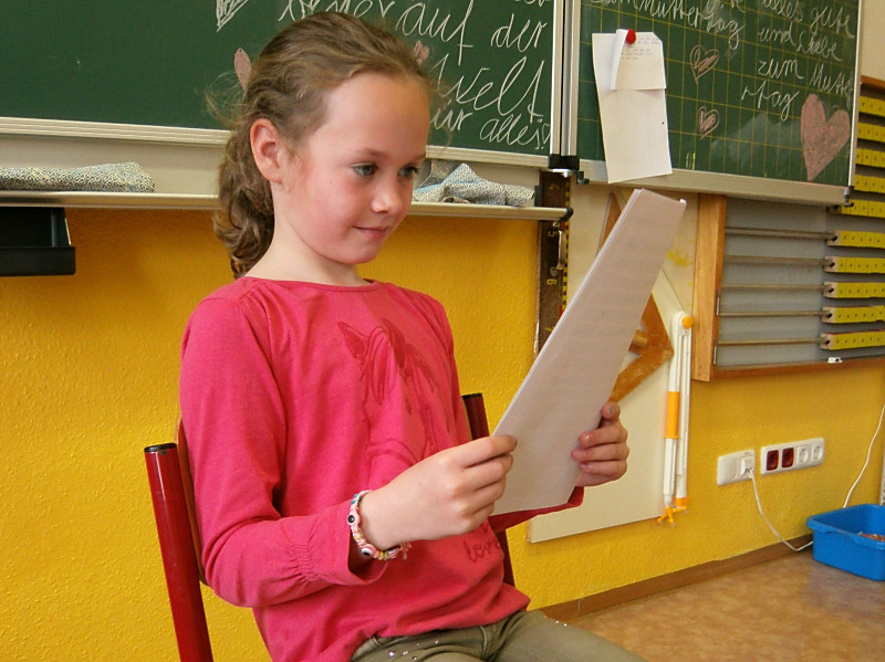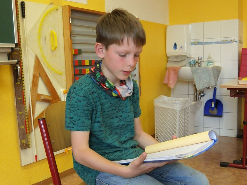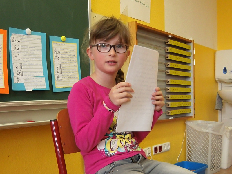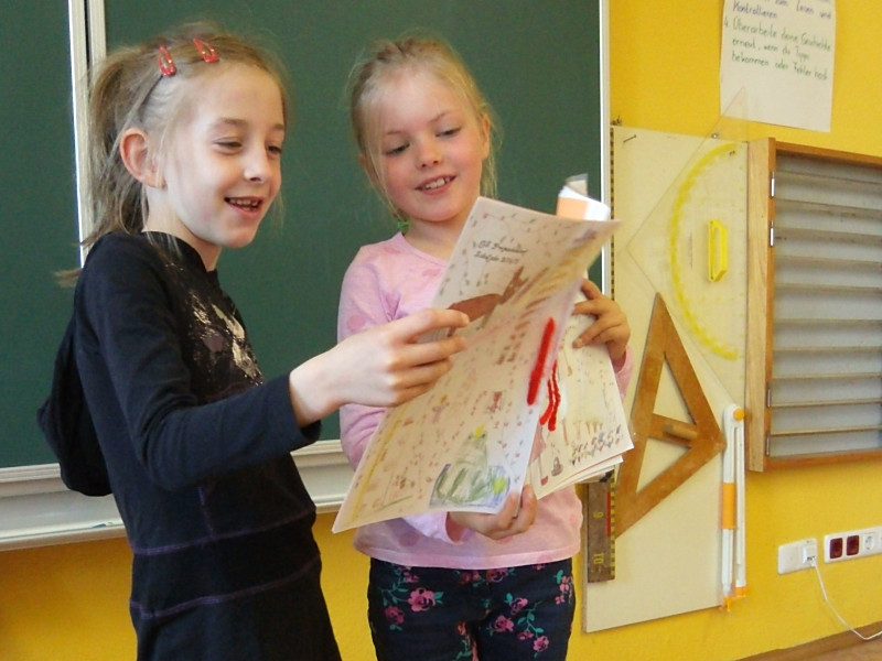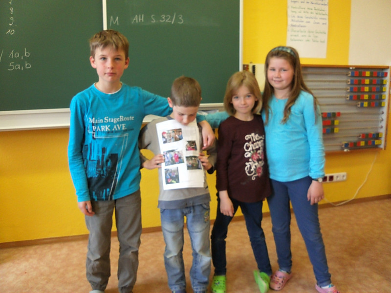 Die Gruppenergebnisse präsentierten die Kinder in der Klasse. Danach wurde das Heft mit Hilfe vieler kleiner Hände in unserer „Schuldruckerei“ in mehreren Etappen kopiert und gebunden. Am Ende war jedes Kind glücklich und stolz über seine Arbeit.