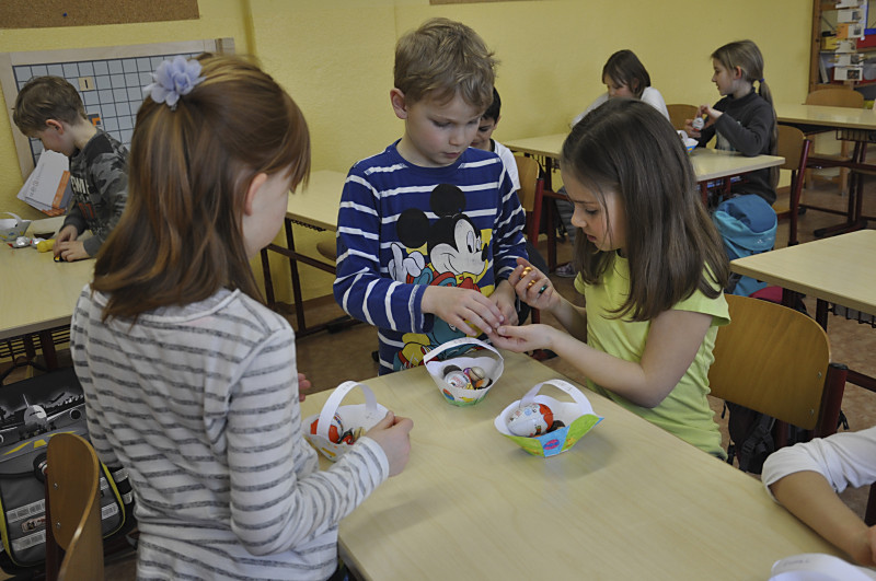An zwei Tagen hatten sich alle Klassen zur Vorfreude auf das Osterfest kleine Projekte einfallen lassen. Es wurde gebacken, gebastelt,gestickt,geturnt, gemalt und gedichtet. Das Suchen der Osternester gehörte natürlich unbedingt dazu.