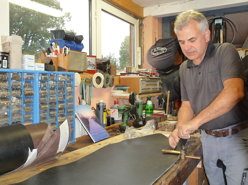 | Die Nähte werden noch mit dem Hammer geschlagen. |