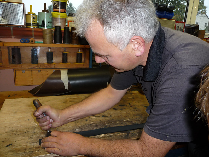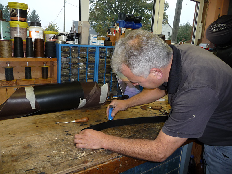 | Hier schrägt Herr Simon den Gürtel an einem Ende an. |