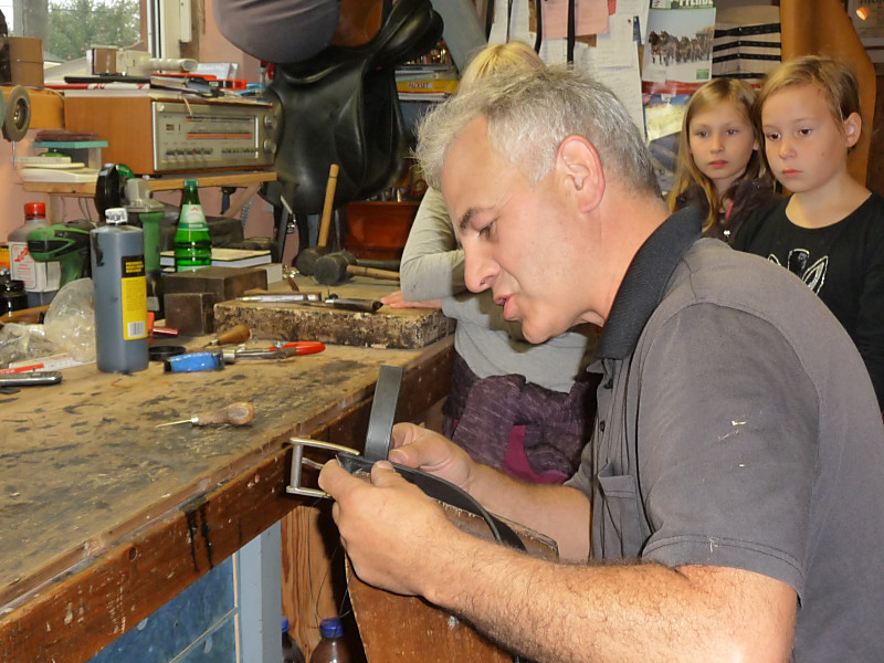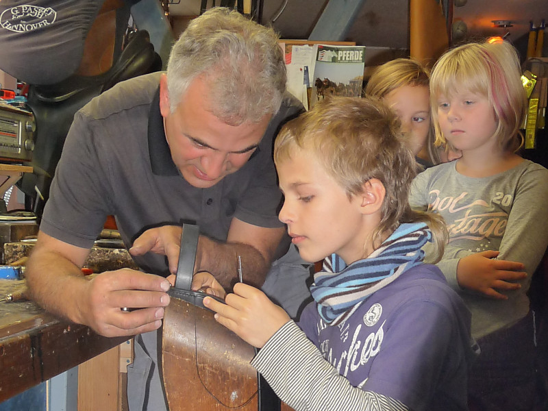 Herr Simon zeigt das Innenleben eines Sattels. |