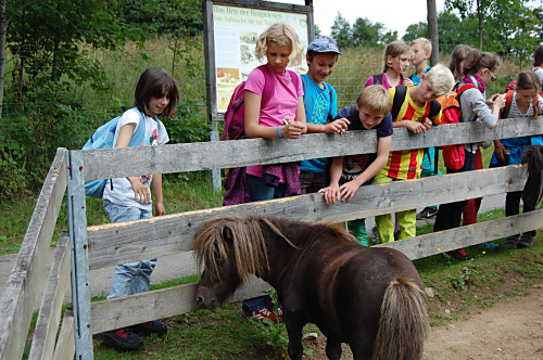 | Die Jungs aus der 4. Klasse konnten sich kaum von den zutraulichen Pferdchen trennen. |