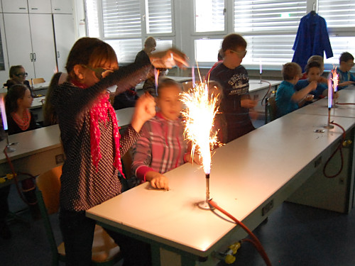 Am 26. November besuchten die 4. Klassen die Oberschule Klingenberg. Wir bekamen einen ersten Eindruck von einer weiterführenden Schule. Wir schnupperten in die Hauswirtschaft, in die Chemie und Biologie, in Musik und Französisch hinein. Uns hat der Tag sehr gefallen.