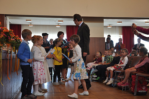 Am 30. August 2014 fand die Schuleinführung im Kulturhaus Pretzschendorf statt. Unsere Schulleiterin Frau Sauer nahm die Schüler der ersten Klasse feierlich in die Grundschule auf. Herr Reichel, der erste Stellvertreter unseres Bürgermeisters, übergab jedem Kind seine Fibel.