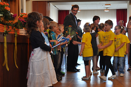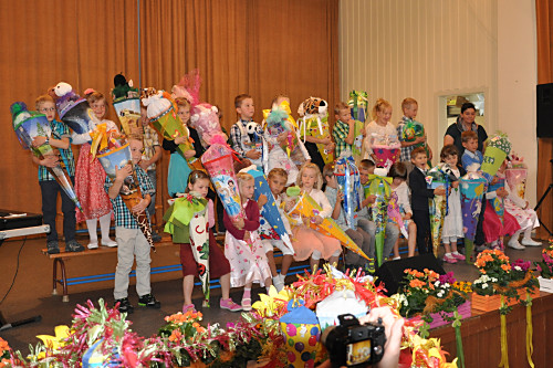 Die Musical-AG und die Tanzgruppe unserer Grundschule gestalteten ein abwechslungsreiches Programm. Die Zuckertüten brachte traditionell die Ponykutsche ins Kulturhaus.