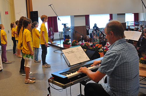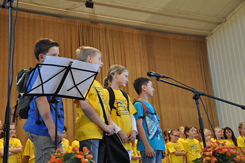| Lieder zum Schulanfang erklangen auf der Bühne. |