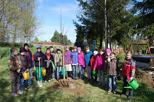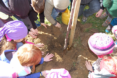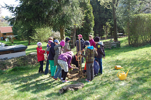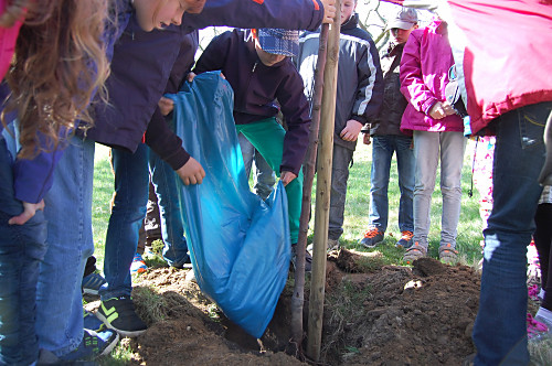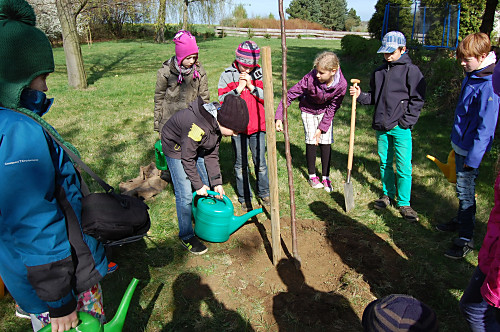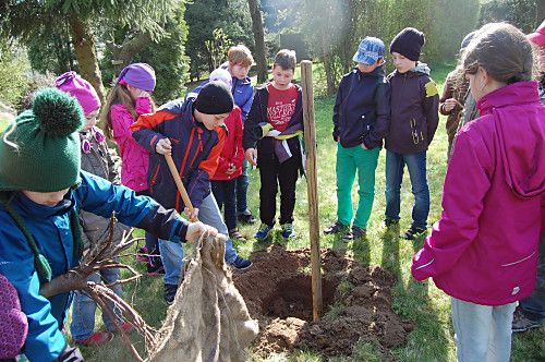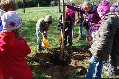 | Nun muss das Bäumchen wachsen und gedeihen. Wir wollen unsere Bäume immer mal besuchen kommen, wenn wir nicht mehr in der Grundschule sind. |