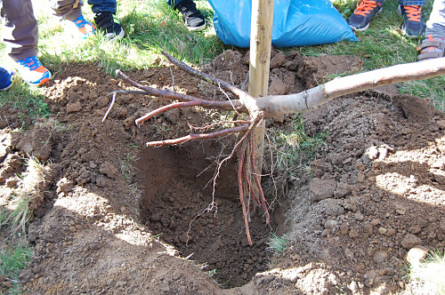 | Nun passten die Wurzeln hinein, die Buche konnte gepflanzt werden. |