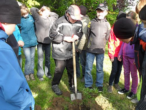 Für das Pflanzloch brachten wir noch gute Komposterde mit, damit unser Klassenbaum einen guten Start hat. |