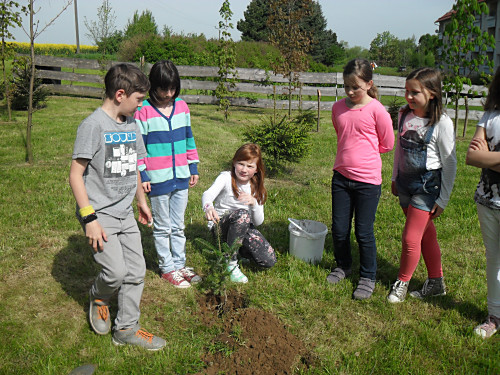 | Wir pflanzen auch noch kleine Tannen, damit alle den Unterschied zwischen Fichten und Tannen erkennen können. |