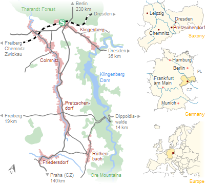 Our home villages Pretzschendorf, Colmnitz, Klingenberg, Friedersdorf und Röthenbach are situated in the German federal state of Saxony in the south-east of Germany.